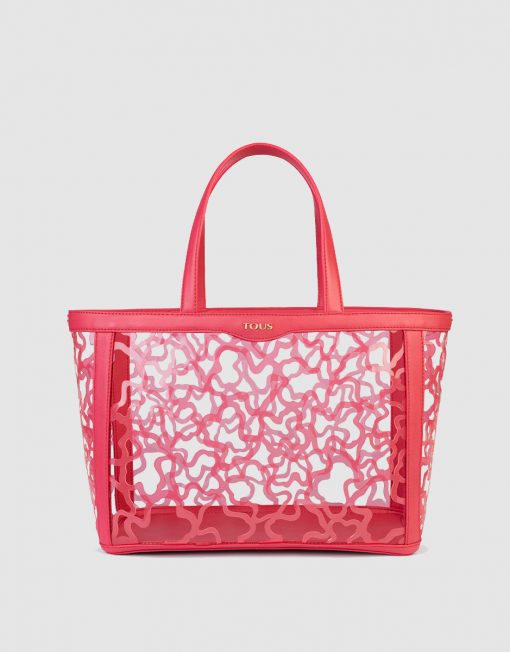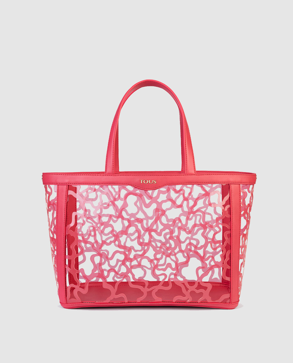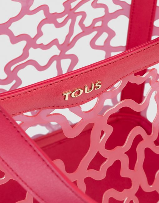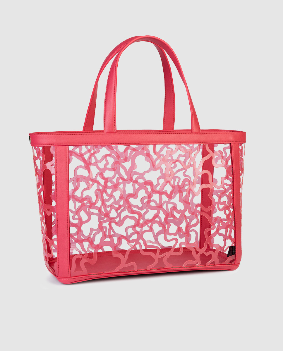 Bolso capazo mediano TOUS Kaos Shock de vinilo en color coral. Asas de mano. Lleva botón a presión en el lateral para poder incorporar bolsa Kaos Shock. Medidas: 25x32x15 cm. Nota: Bolsa interior no incluida.
