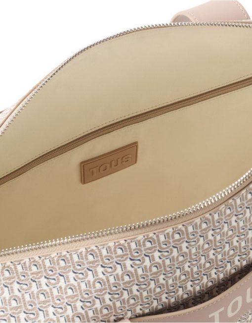 Bolso capazo grande TOUS MANIFESTO de lona con detalles en piel sintética de color topo. Cierre de cremallera. Bolsillo interior con cremallera. Asas de hombro fijas. Medidas (alto x ancho x fondo): 32 x 54 x 17,5 cm