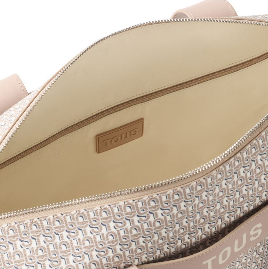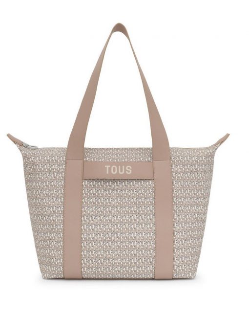 Bolso capazo grande TOUS MANIFESTO de lona con detalles en piel sintética de color topo. Cierre de cremallera. Bolsillo interior con cremallera. Asas de hombro fijas. Medidas (alto x ancho x fondo): 32 x 54 x 17,5 cm