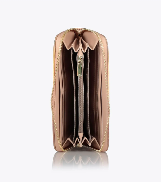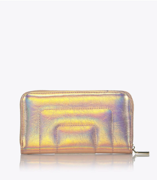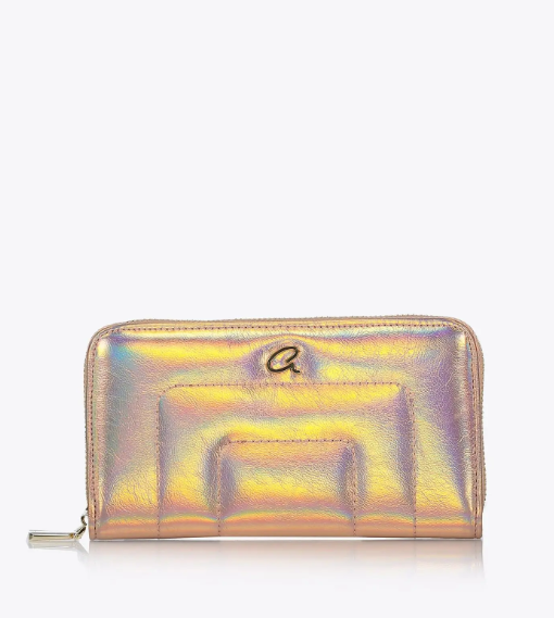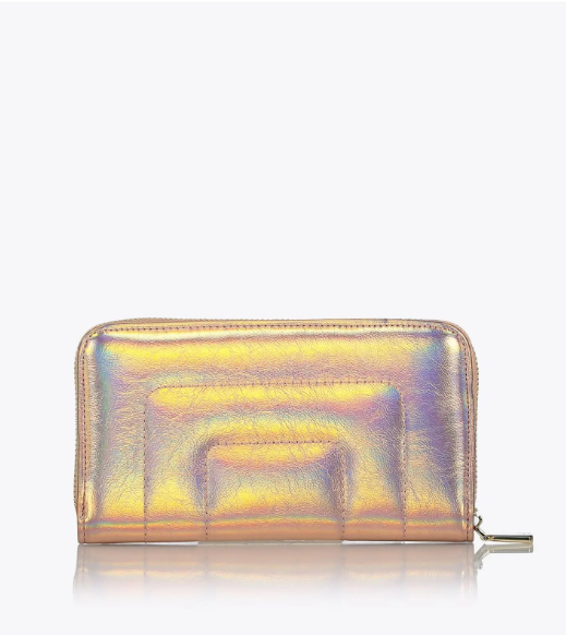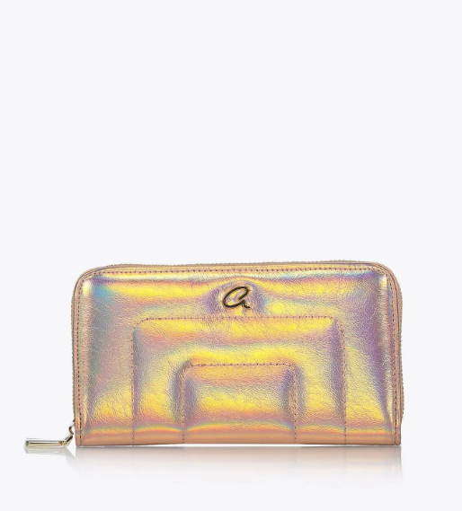 Cartera de mujer acolchada metalizada, confeccionada en piel sintética. Cierre de cremallera y dispone de bolsillos interiores para billetes, monedas y tarjetas. Las carteras son un accesorio imprescindible para cualquier mujer que quiera llevar su dinero y sus tarjetas de forma segura y con estilo.
