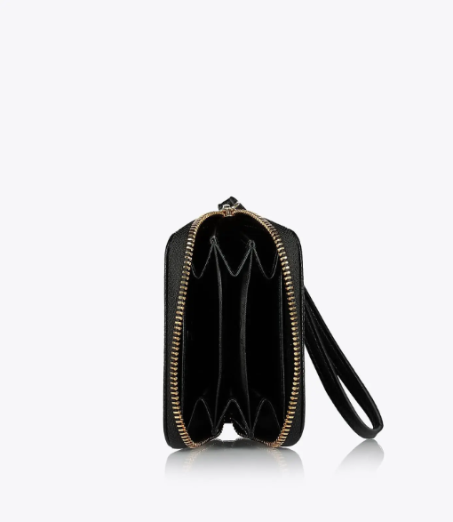 Cartera de mujer, fabricada en piel sintética. Cierre de pinza y equipamiento interior, bolsillos para billetes, monedas y tarjetas. Correa de muñeca adicional. Las carteras son un accesorio imprescindible para cualquier mujer que quiera llevar su dinero y sus tarjetas de forma segura y con estilo.