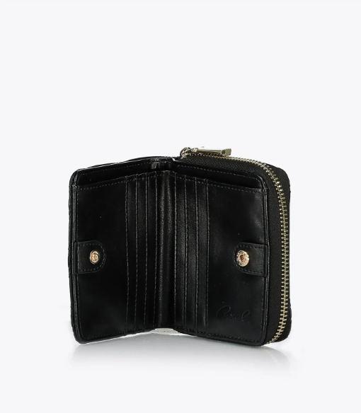 Cartera de mujer con estampado acolchado y detalle de costuras. Cierre de cremallera y botón, bolsillos interiores para billetes, monedas y tarjetas. Las carteras son un accesorio imprescindible para cualquier mujer que quiera llevar su dinero y sus tarjetas de forma segura y con estilo.