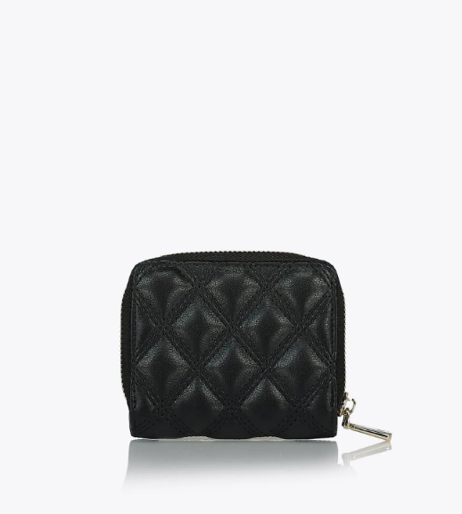 Cartera de mujer con estampado acolchado y detalle de costuras. Cierre de cremallera y botón, bolsillos interiores para billetes, monedas y tarjetas. Las carteras son un accesorio imprescindible para cualquier mujer que quiera llevar su dinero y sus tarjetas de forma segura y con estilo.