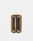 Bolsillo interior con cremallera. Divisiones para tarjetas de crédito. Inscripción logotipo frontal de metal.