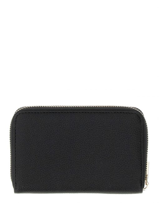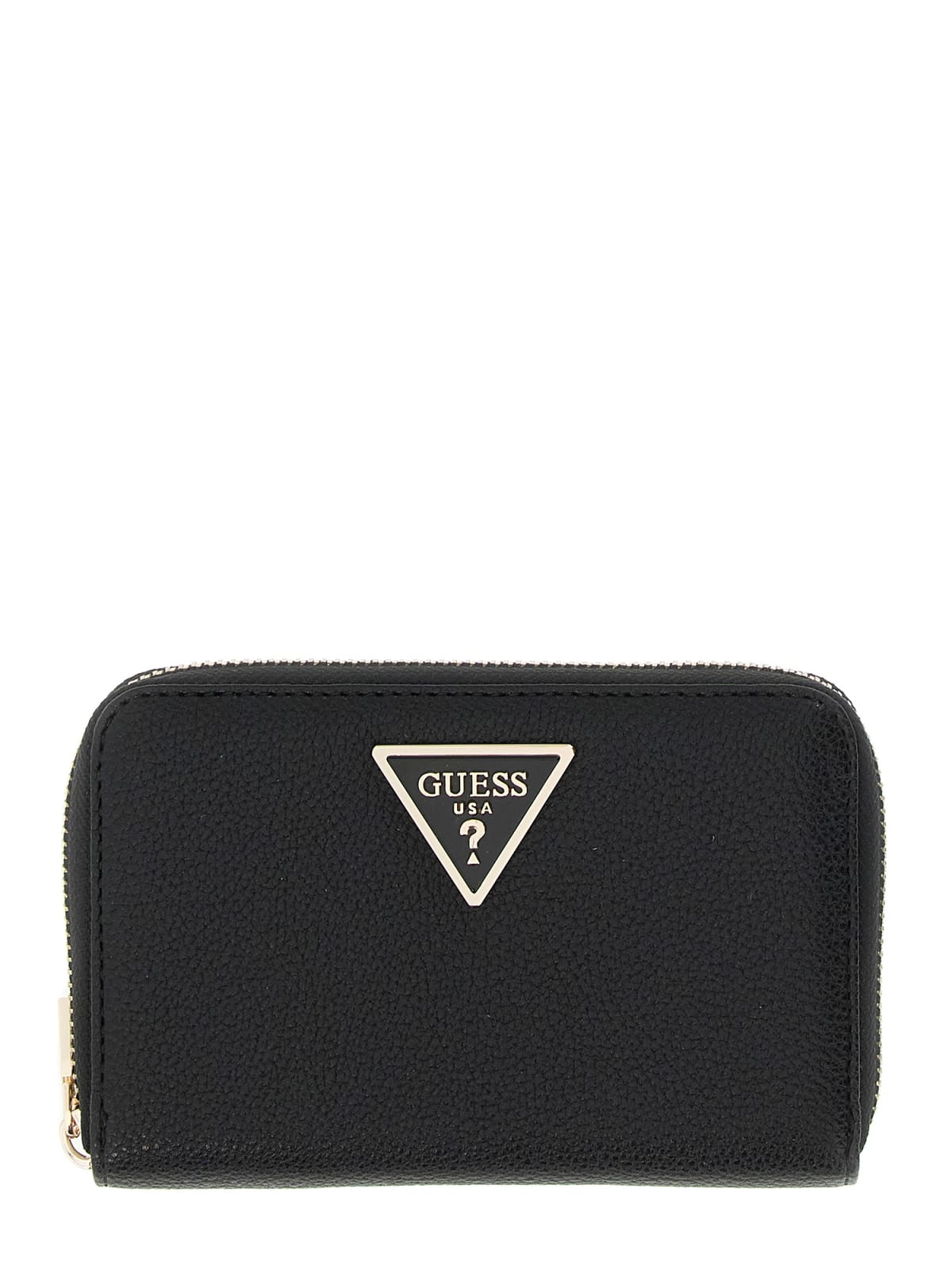-Cuero sintético exterior. -Cierre con cremallera. -Herrajes dorados. -Detalle del logo en triángulo en el frente