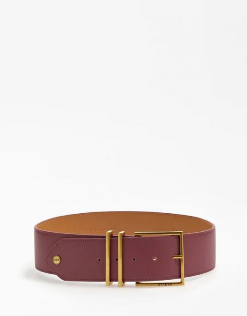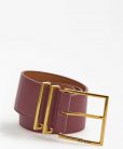 Cinturón de piel sintética. Piezas metálicas de color dorado. Cierre con hebilla y hebijón.