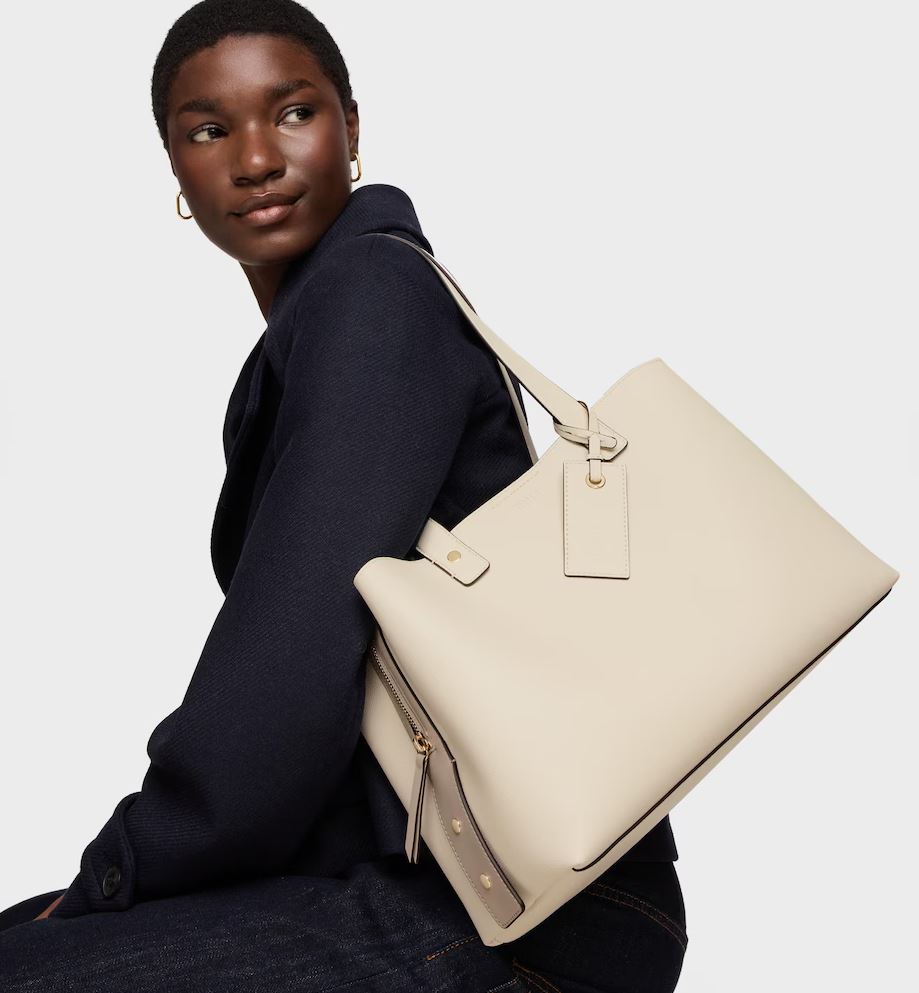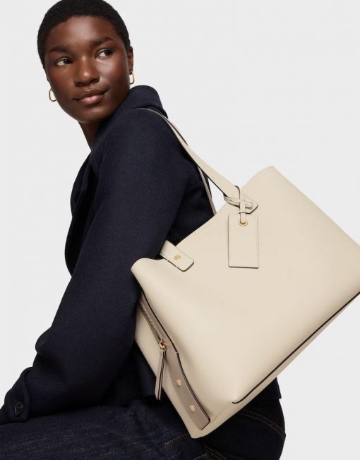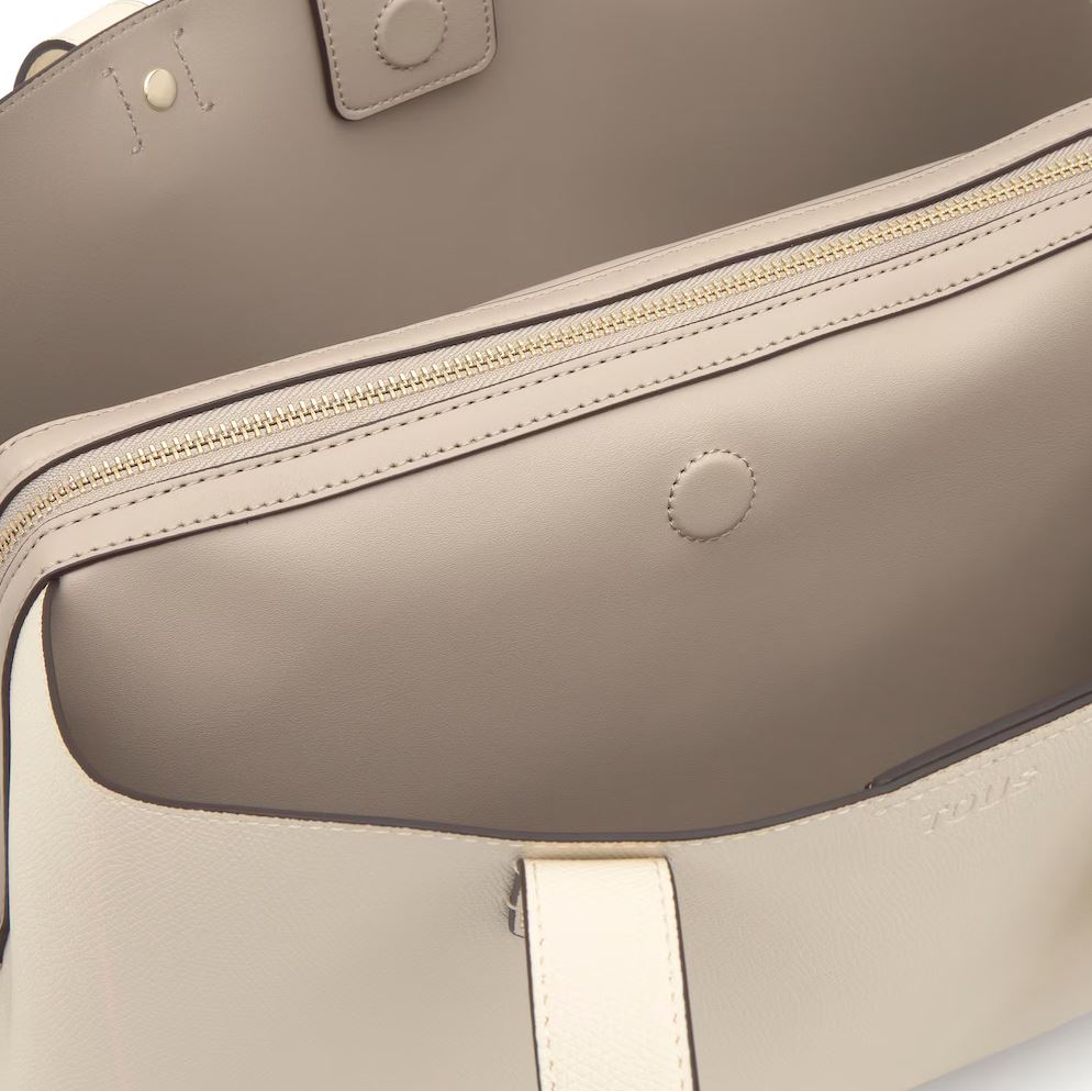 Bolso city mediano TOUS The Citybow de poliuretano en color beige. Cierre con botón magnético. Bolsillo interior con cremallera. Asa fija de hombro. Medidas (alto x ancho x fondo): 19 x 39 x 24 cm.