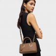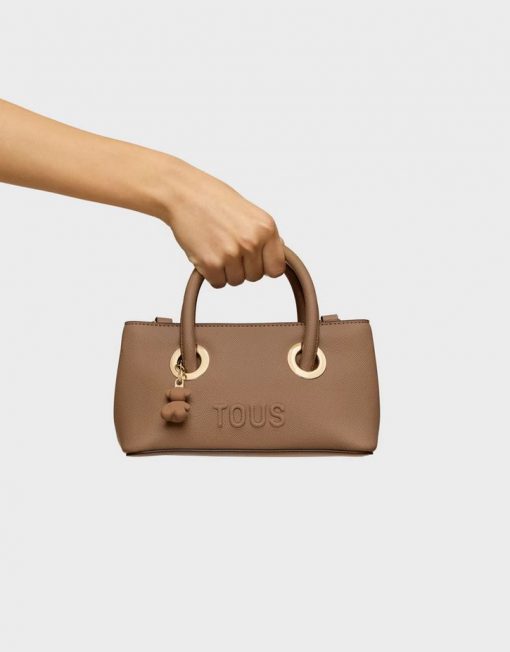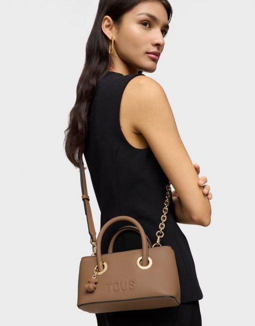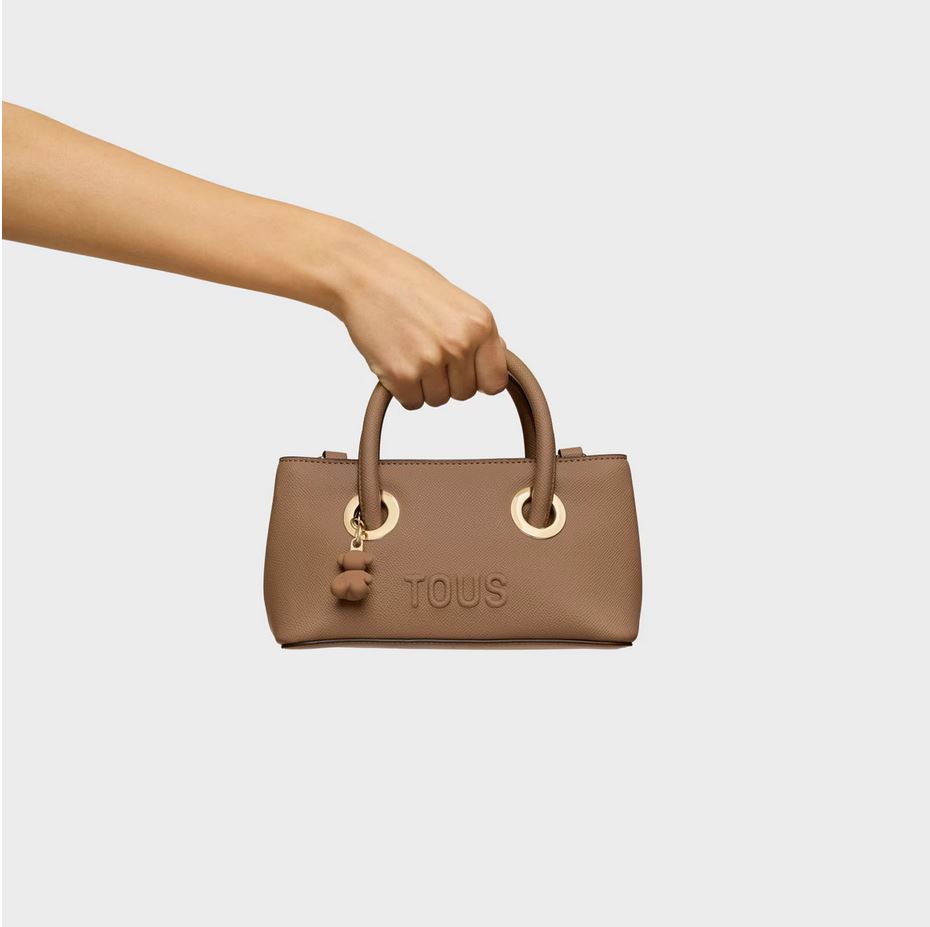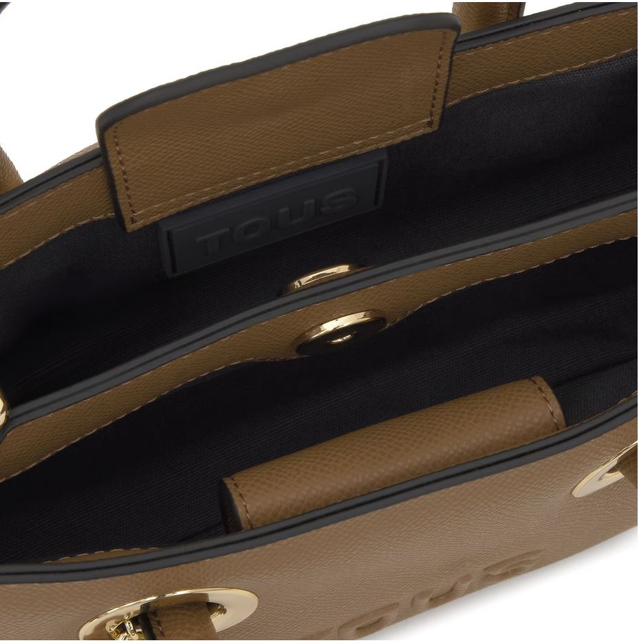 Bolso City pequeño TOUS Poppy de poliuretano en color tierra. Dos compartimentos con cierre de botón magnético. Asas fijas de mano y asa bandolera ajustable y desmontable. Medidas (alto x ancho x fondo): 12 x 21 x 10 cm.