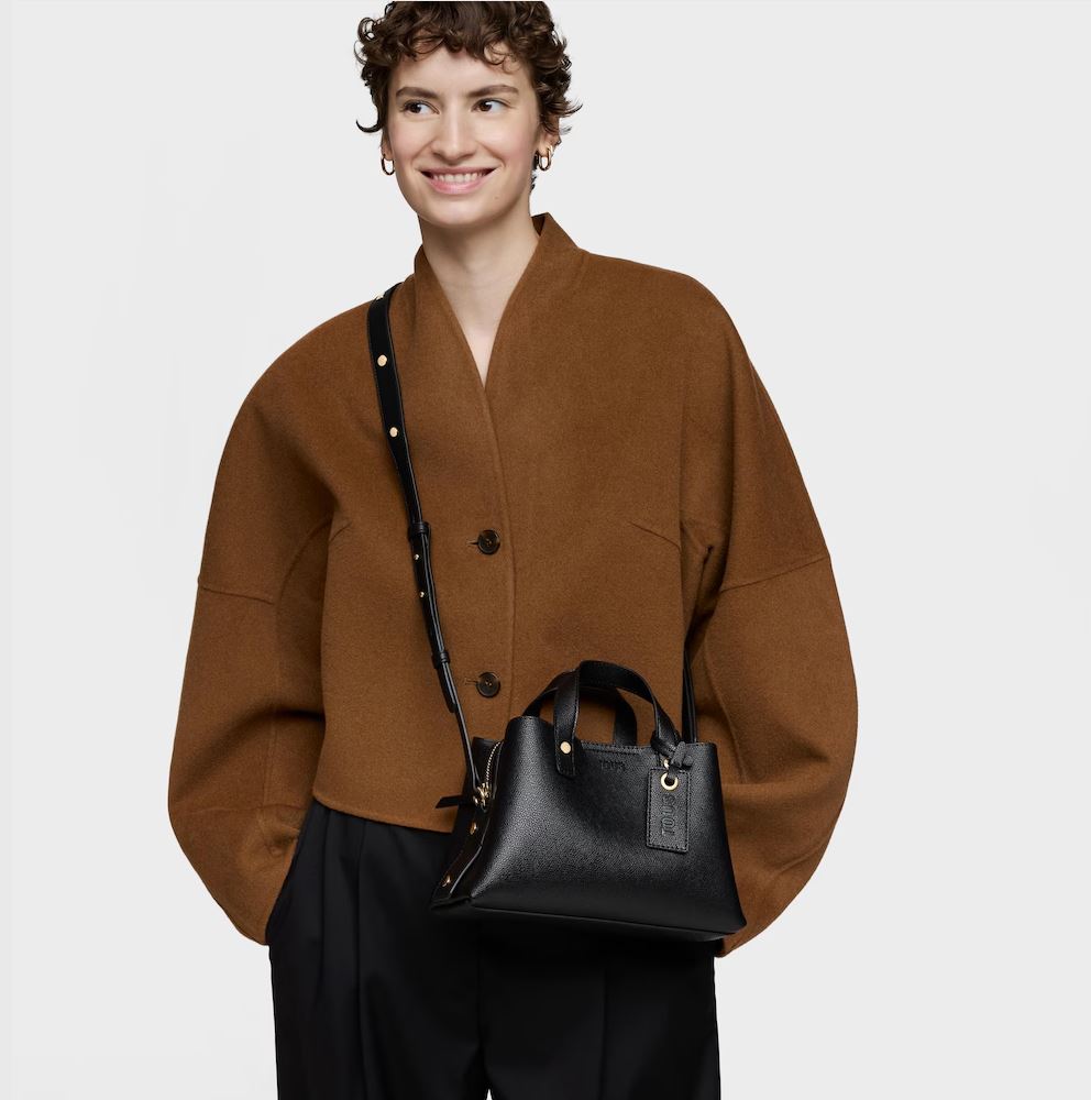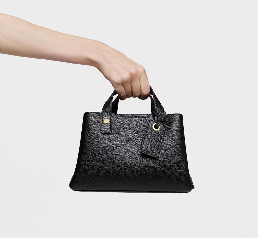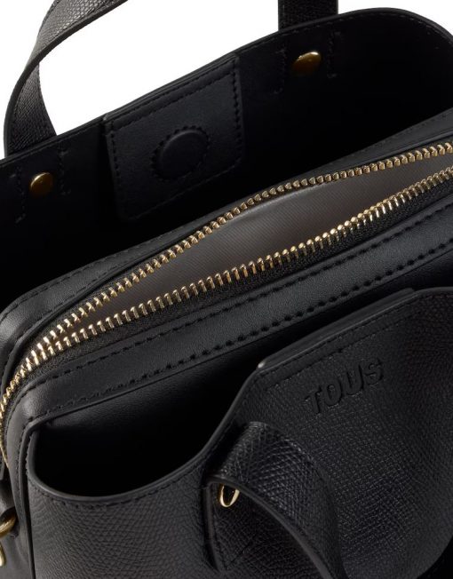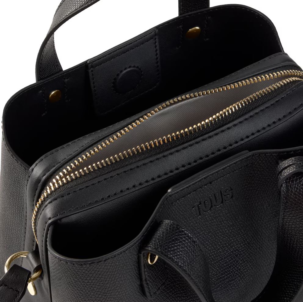 Bolso city pequeño TOUS The Citybow de poliuretano en color negro. Cierre de cremallera. Bolsillo interior abierto. Asa fija de hombro y asa bandolera ajustable y desmontable. Medidas (alto x ancho x fondo): 13,5 x 25 x 15 cm.