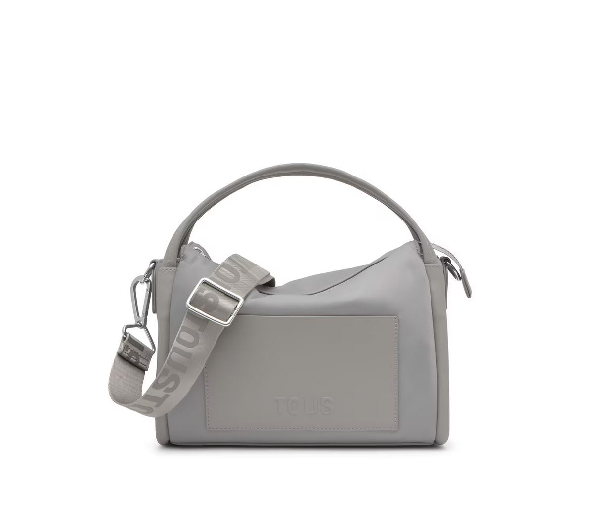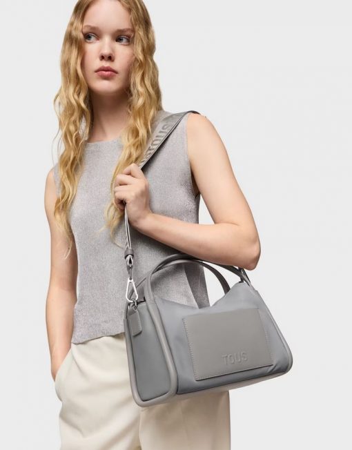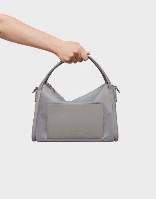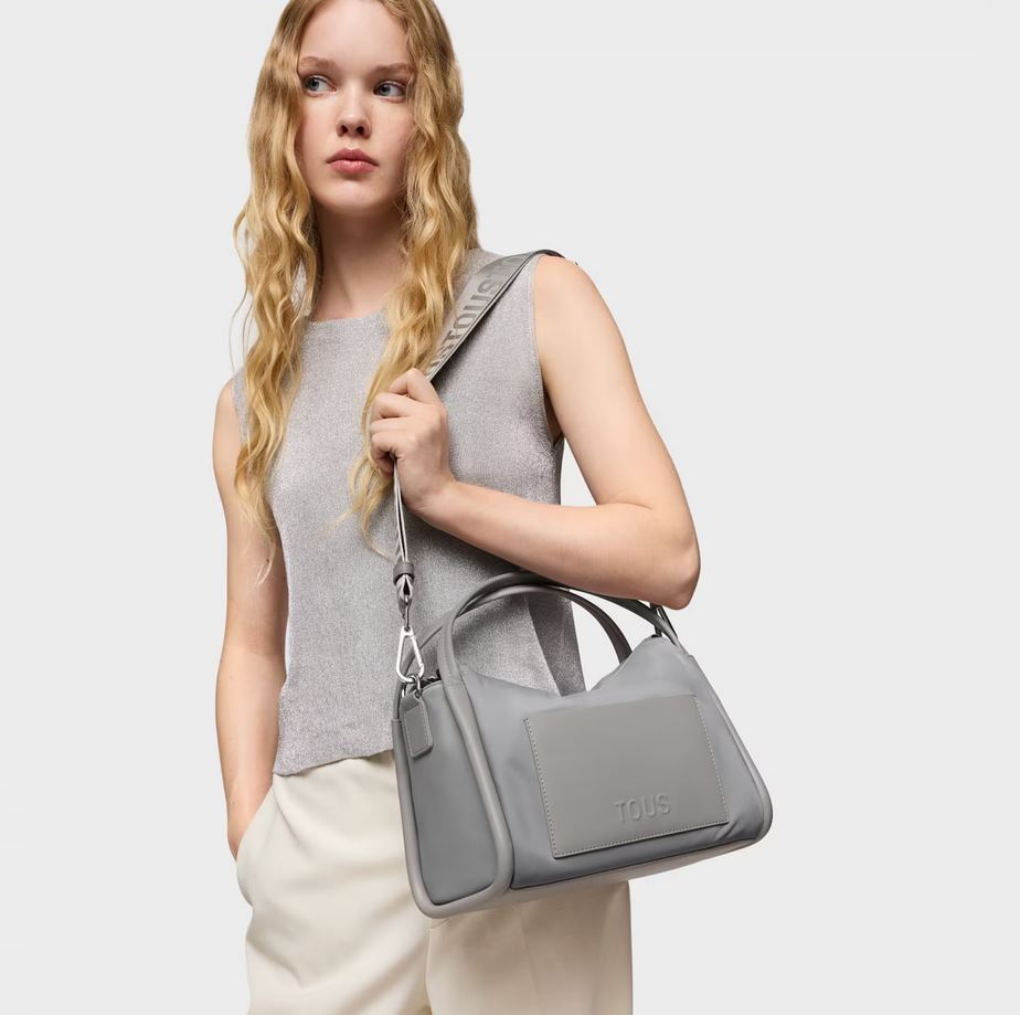 Bolso City TOUS Miranda Soft de poliéster reciclado en color gris. Cierre de cremallera. Bolsillo interior abierto. Asa bandolera ajustable y extraíble y asas fijas de hombro. Medidas (alto x ancho x fondo): 22 x 27,5 x 15, 5 cm.