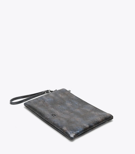 Elegante bolso de noche metálico con estampado de serpiente en relieve, perfecto para salidas nocturnas y eventos formales. La bolsa cuenta con un cierre de cremallera seguro, que protege sus artículos personales, mientras que el asa garantiza un transporte cómodo. El interior totalmente forrado con un bolsillo con cremallera ayuda a organizar los artículos más pequeños. Consíguelo ahora y destaca con estilo y sofisticación en cada aparición.