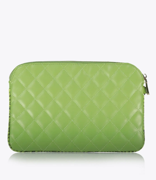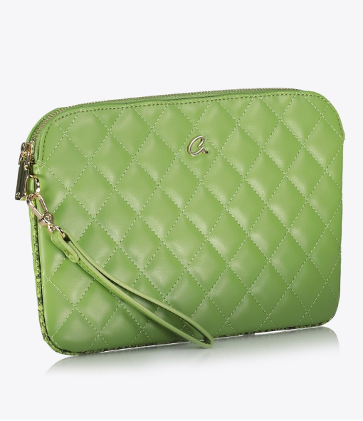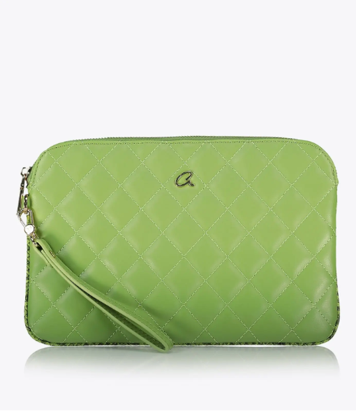 Bolso de mano acolchado para mujer confeccionado en piel sintética de alta calidad. Cuenta con un compartimento principal y una correa de asa desmontable. Se cierra con cremallera. Logotipo metálico con una "a" en la parte delantera.
