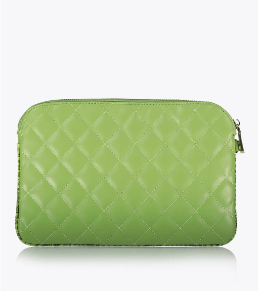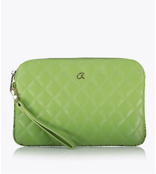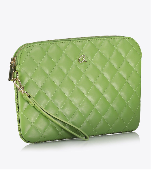 Bolso de mano acolchado para mujer confeccionado en piel sintética de alta calidad. Cuenta con un compartimento principal y una correa de asa desmontable. Se cierra con cremallera. Logotipo metálico con una "a" en la parte delantera.