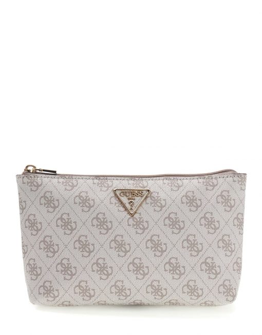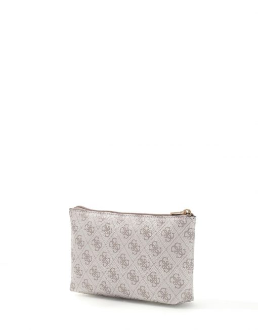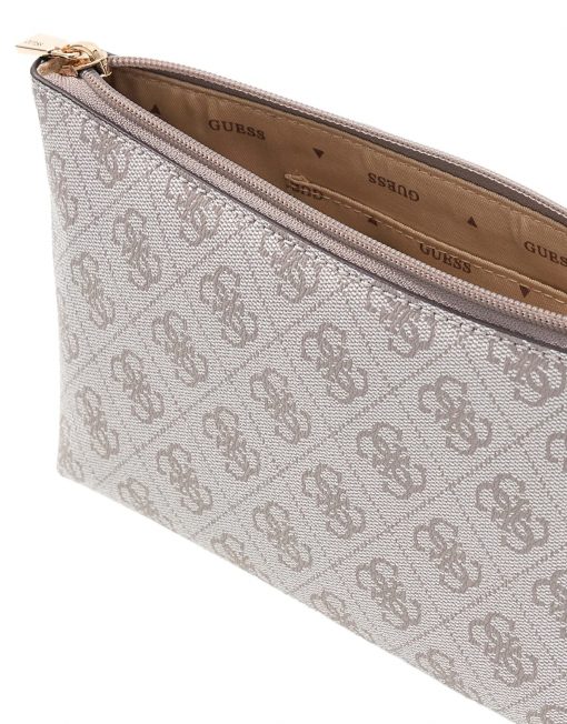 CLUTCH GUESS SWSG7459145 LAUREL II SLG WRISTLET POUCH DARK TAUPE LOGO