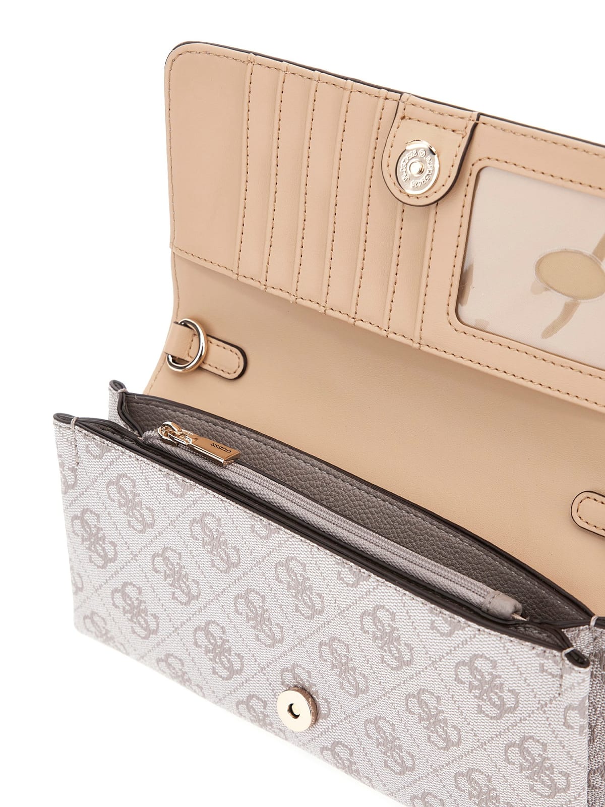 CLUTCH ORGANIZADOR GUESS HWBG9672750 NOELLE II MINI XBODY FLAP ORGANIZER DARK TAUPE LOGO