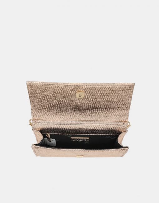 Su formato tipo sobre con solapa estructurada y cierre magnético mantiene tus imprescindibles bien protegidos. Además, incorpora cadena metálica para que puedas llevarlo al hombro o cruzado cuando prefieras tener las manos libres. Un bolso pensado para acompañarte
