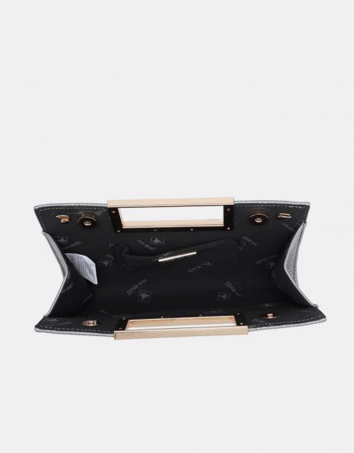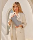 Su cierre metálico frontal aporta personalidad al diseño y refuerza su estética refinada. Además, su bandolera extraíble permite adaptarlo fácilmente a diferentes estilos de uso, pudiendo llevarlo como clutch de mano o colgado al hombro cuando buscas mayor comodidad.