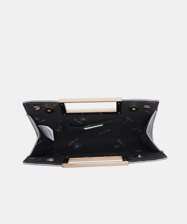 Su cierre metálico frontal aporta personalidad al diseño y refuerza su estética refinada. Además, su bandolera extraíble permite adaptarlo fácilmente a diferentes estilos de uso, pudiendo llevarlo como clutch de mano o colgado al hombro cuando buscas mayor comodidad.