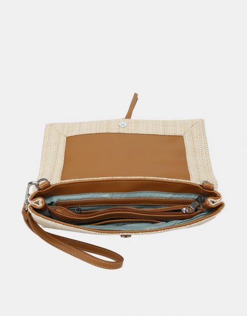 El bolso de mano 261435 de Pepe Moll es un diseño elegante y versátil que combina una estética natural con detalles sofisticados. Su estructura tipo clutch y su textura inspirada en fibras naturales aportan un aire fresco y atemporal, ideal para completar looks de primavera y verano con un toque refinado y muy actual.