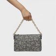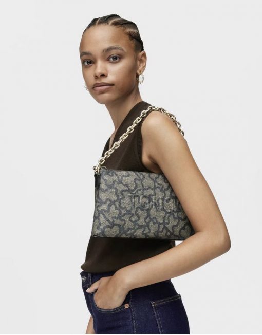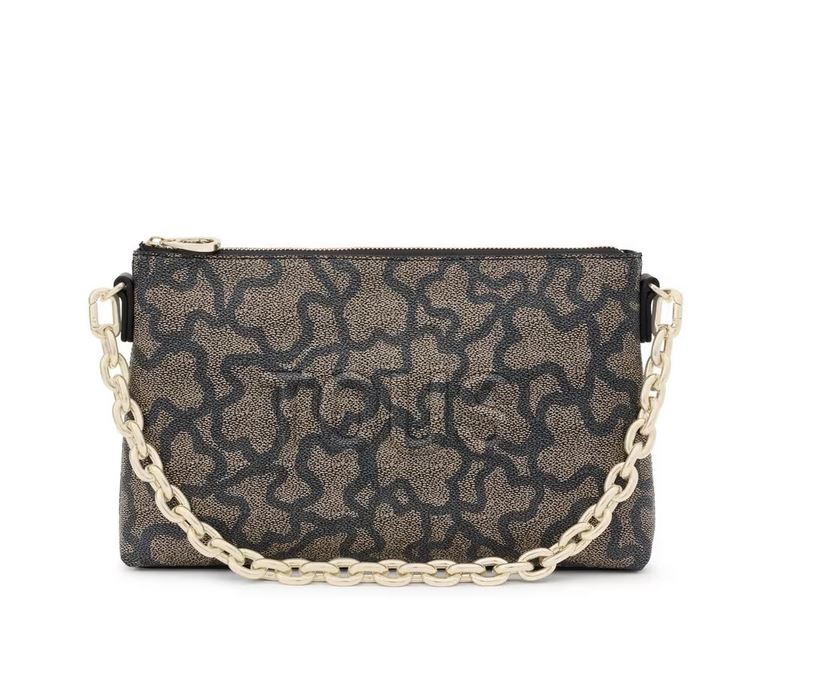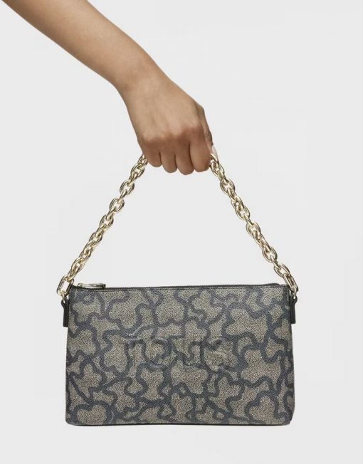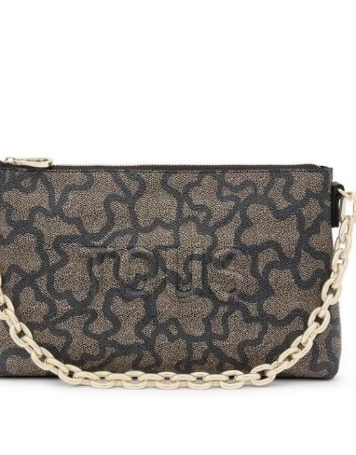Bolso clutch TOUS Kaos Icon de lona con estampado Kaos en color negro y gris con detalles en piel sintética. Cierre de cremallera. Asa de cadena extraíble de hombro o mano. Medidas (alto x ancho x fondo): 16 x 26 x 7 cm.