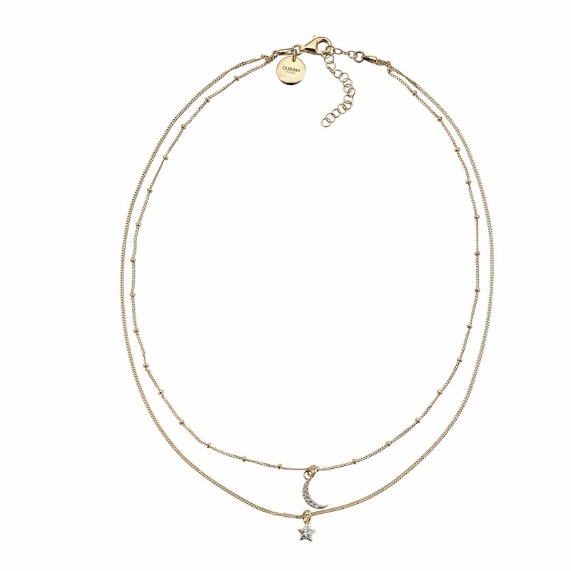 Colgante Astros, doble cadena luna y estrella, detalle de circonitas, dorado, 40 y 43 cm .