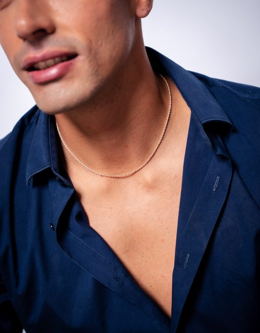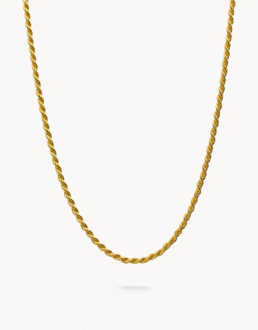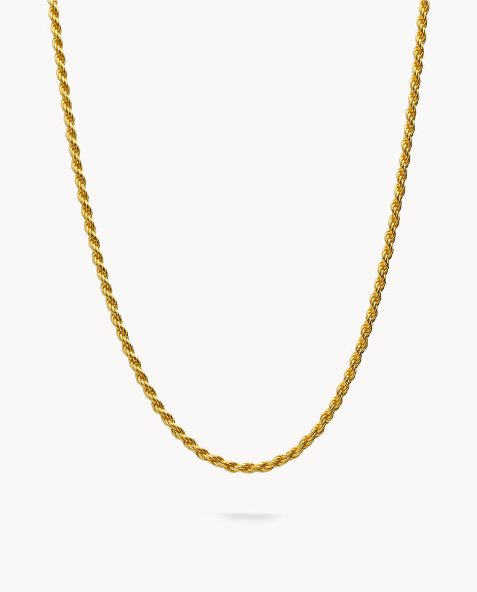 Cadena de plata de ley 925 bañada en oro con eslabón tipo cordón macizo de 1,50 mm de ancho y 45 cms de largo, cierre de mosquetón.