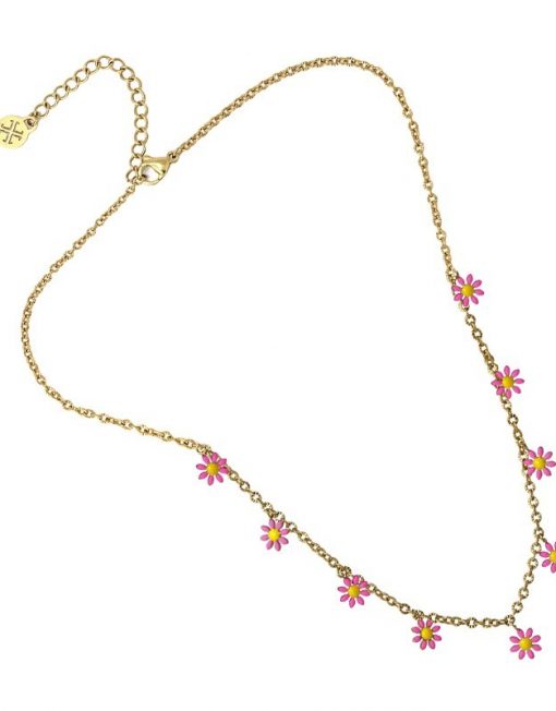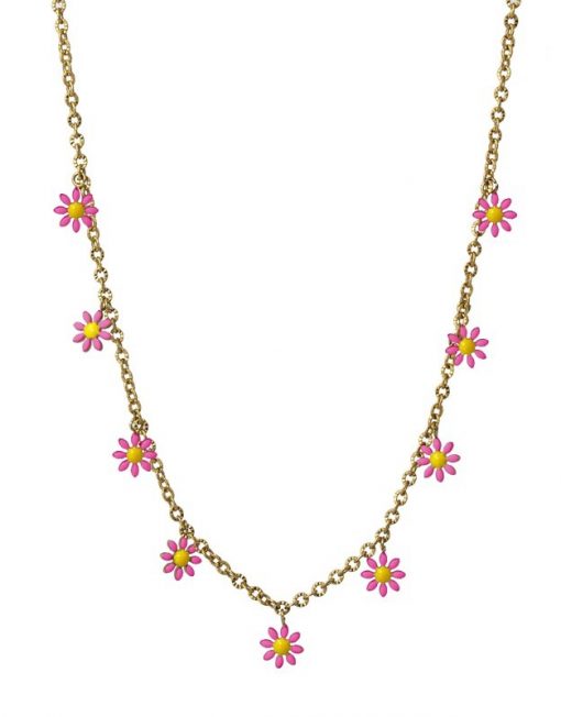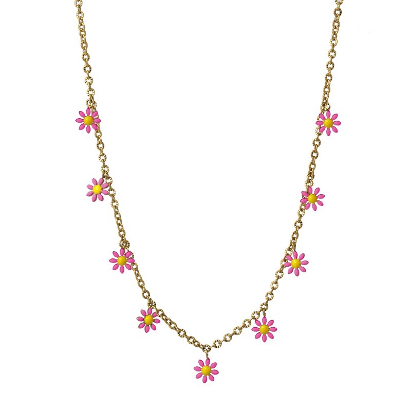 Collar de cadena fina con abalorios tipo margarita en tres colores súper románticos.