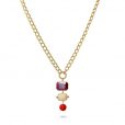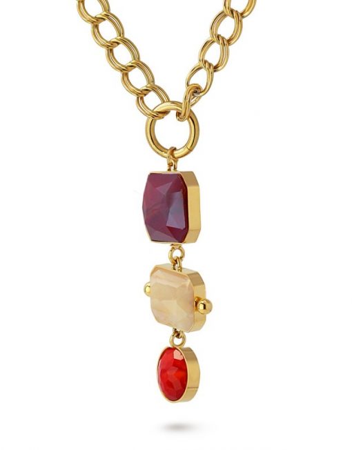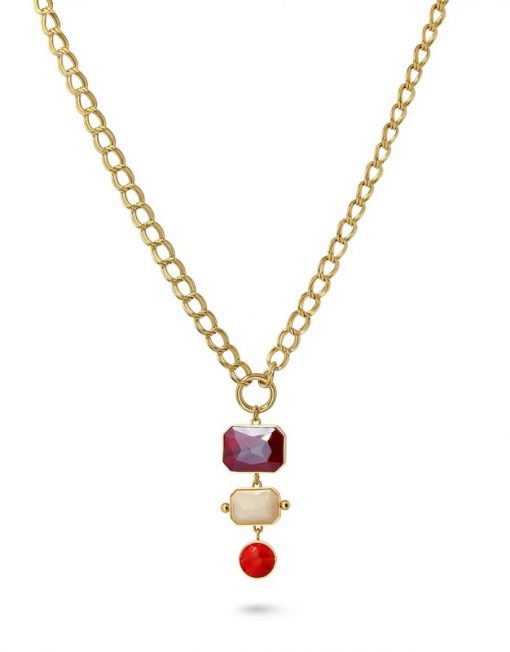Collar de eslabones con colgante formado por tres piezas geométricas de cristal coloreado.