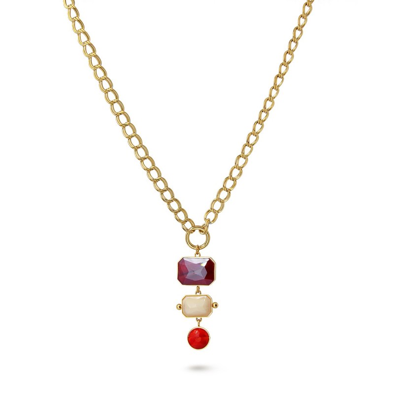 Collar de eslabones con colgante formado por tres piezas geométricas de cristal coloreado.