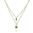 Collar doble capa de cadena fina y detealles llave y candado con circonita coloreada en verde o negro. Es de acero quirúrgico hipoalergénico y lo puedes llevar a diario porque combina bien con todo tipo de looks. Un esencial que te acompañará siempre. Disponible pulsera, pendientes y anillo a juego. Las cadenas miden 38 y 42 cm y cuentan con extensión de 5 cm y cierre tipo langosta.