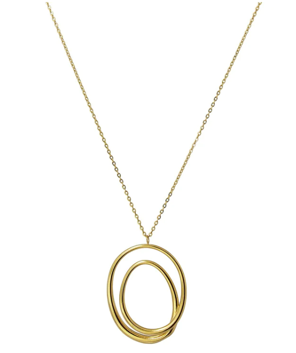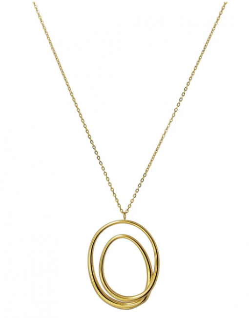 Collar de acero quirúrgico compuesto por cadenita y detalle principal geométrico, formado por una línea que se torsiona irregularmente. Fantástico para llevar a diario combinado con unos pendientes sencillos del mismo color. El detalle mide 45 mm y la cadena 40 cm de largo con cierre tipo langosta y extensión de 5 cm. Hipoalergénico.