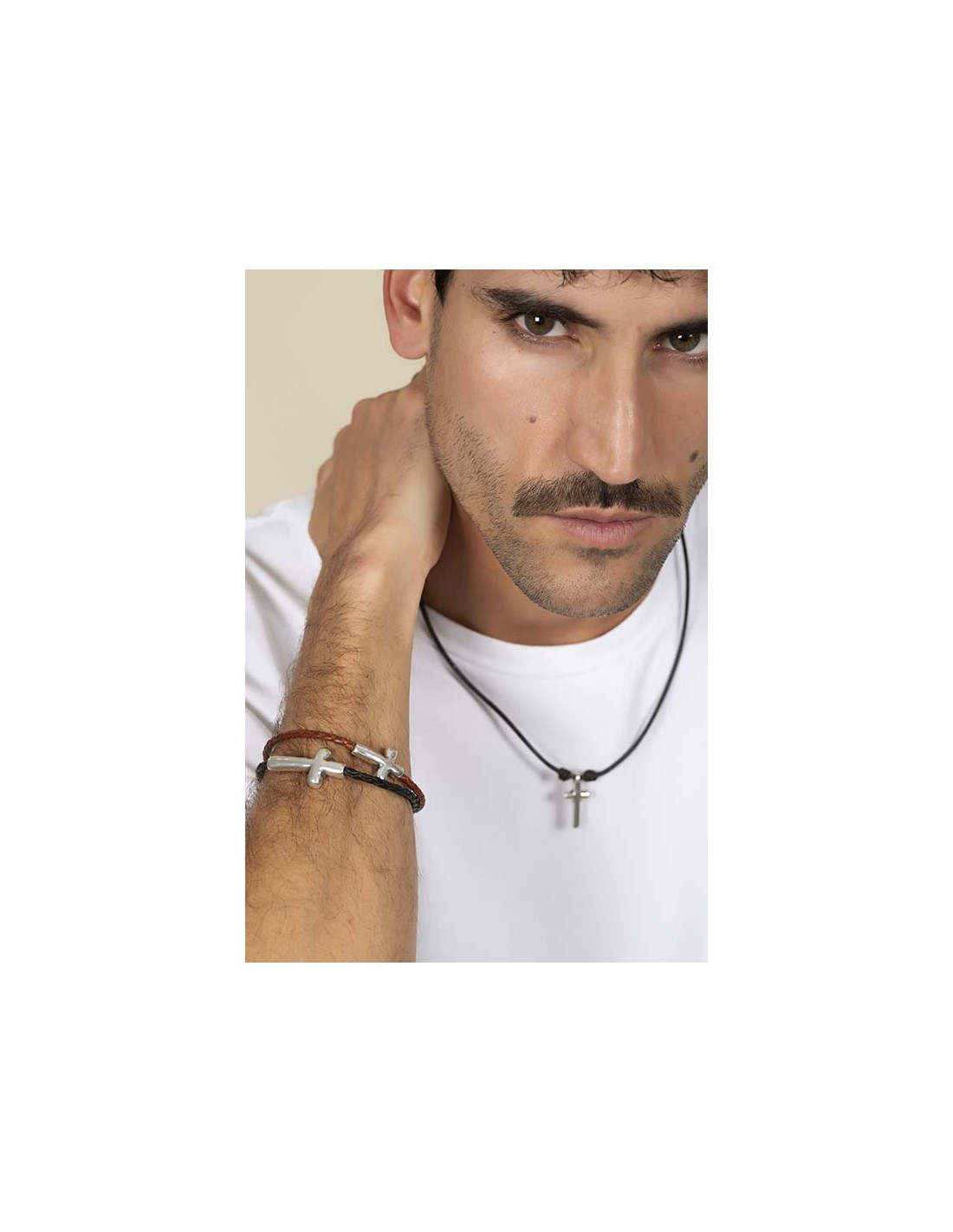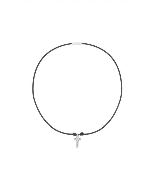 Explora la expresión de tu fe con el Collar Fe de cuero de la colección Man de Ciclón. Este collar presenta un colgante en forma de cruz de 30mm bañado en plata que añade un toque distintivo a tu estilo. La cadena, con una longitud de 50cm y cierre a presión, es tanto elegante como funcional.