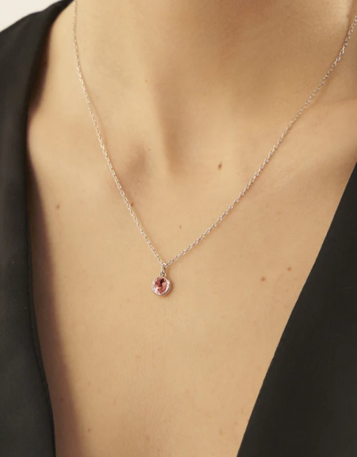 Collar corto 7mm de cristal y Plata de Ley bañada en Rodio. Largo: 40-45cm diámetro motivo: 1cm con forma de círculo de la colección Basic