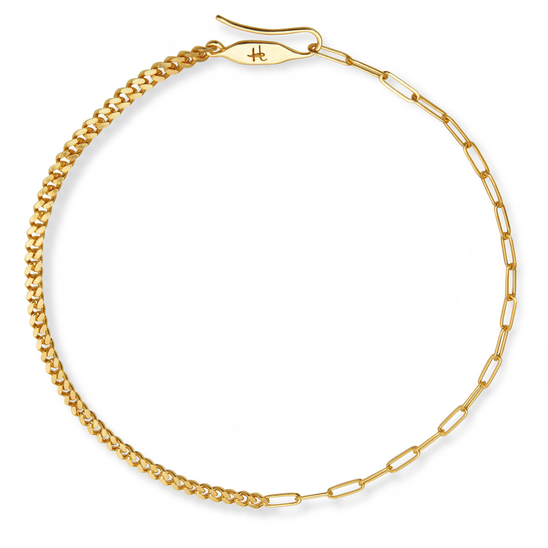 Esta gargantilla está diseñada para aportar un toque urbano y sofisticado a tus looks. Combina dos cadenas, de forma que se puede llevar en distintas posiciones. Su cierre permite ajustarlo a distintas alturas. Llévalo para subir tus looks informales o completar tus estilismos más arreglados.