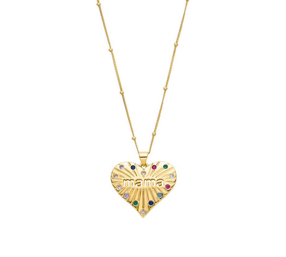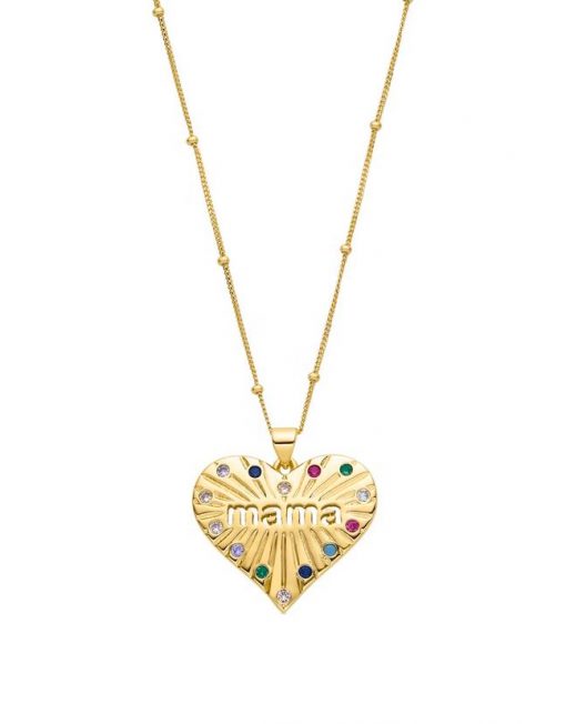 Collar Bamed de Plata de Ley 925 y Circonita Multicolor acabado en oro amarillo de 18 quilates. El amor y el cariño hecho joya para agradecer con el corazón a las madres todo lo que dan.