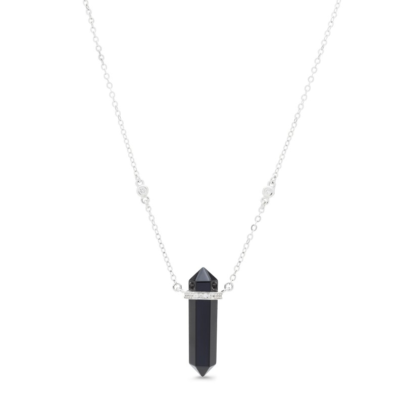 Collar Brineth en plata y cuarzo hidrotermal ónix.