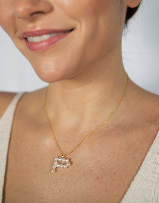 COLGANTE P Piedras: PERLA BLANCA Acabado BAÑO DE ORO AMARILLO DE 18 QUILATES Medidas: alto: 23.400 mm, largo: 25.800 mmy ancho: 460.000 mm Peso: 2.00 gr. Tallado: ADHERIDO