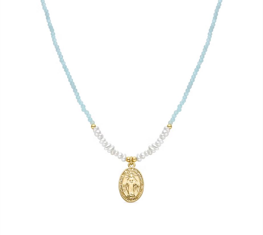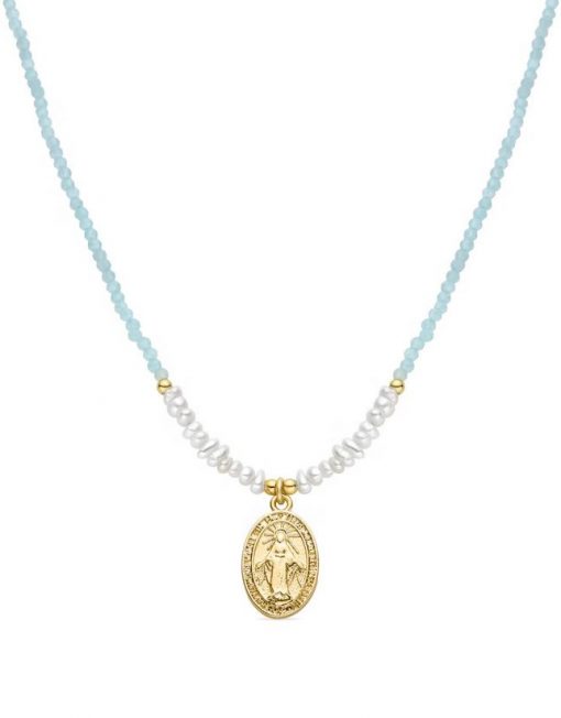 Collar Osith colgante de metal y cadena de Plata de Ley 925 con Perla Blanca acabado en oro amarillo de 18 quilates. Es un regalo para toda la vida, sirven tanto para grandes, como para pequeños.