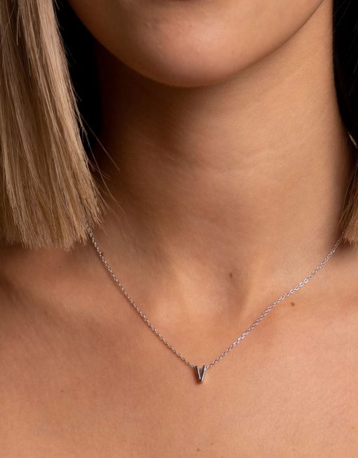 Collar de plata de ley 925 bañada en rodio con inicial G de 7 mm de alto y 3 mm de grosor, cadena de 40 cms más 5 cms de alargador y cierre de mosquetón.