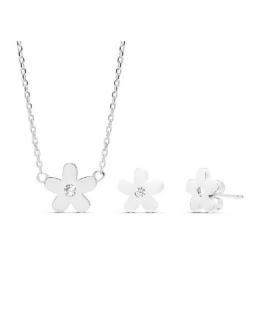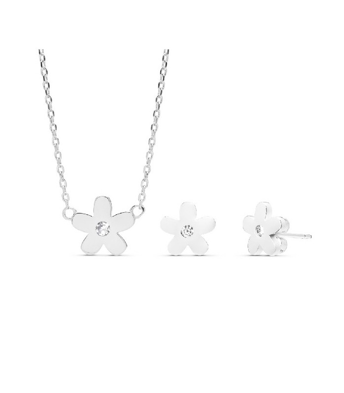 COLLAR + PENDIENTE SILVER DIEZ JU3015 FLOR