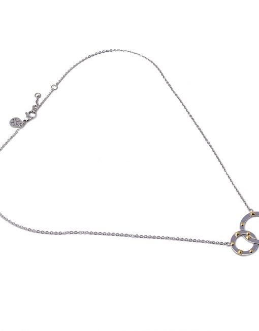 Collar bicolor con detalle entrelazado con remaches