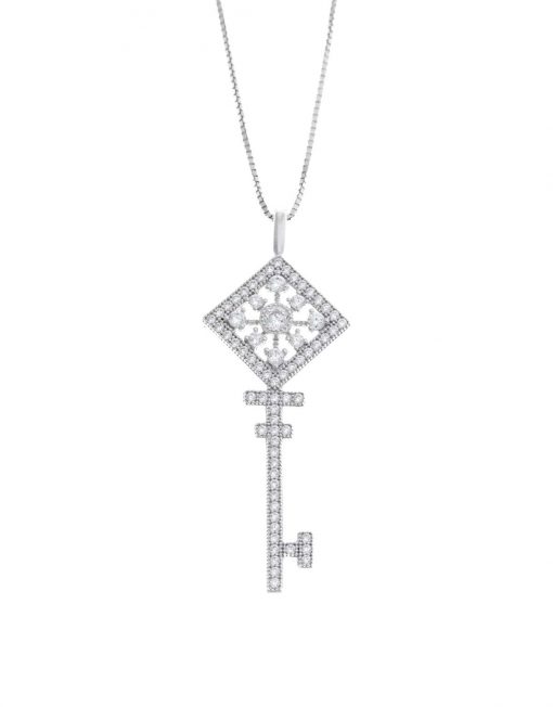 COLLAR SALVATORE 136C0083 PLATA RODIO LLAVE CIRCONITAS BLANCAS