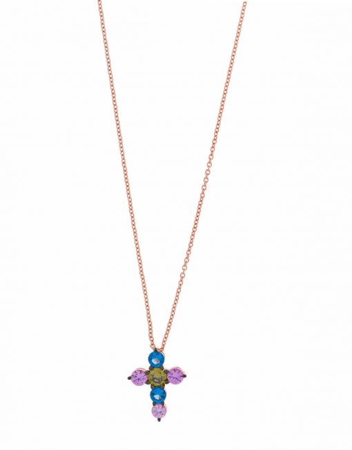 COLLAR SALVATORE 136C0278 PLATA CHAPADO ROSA CRUZ CIRCONITA ROSA