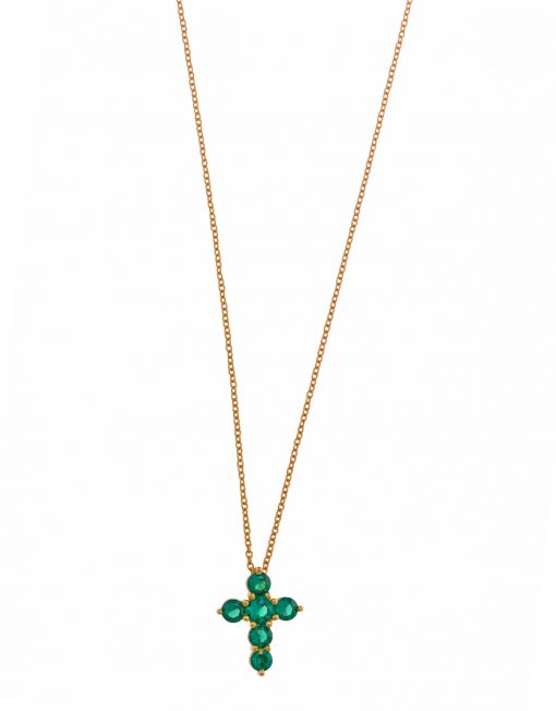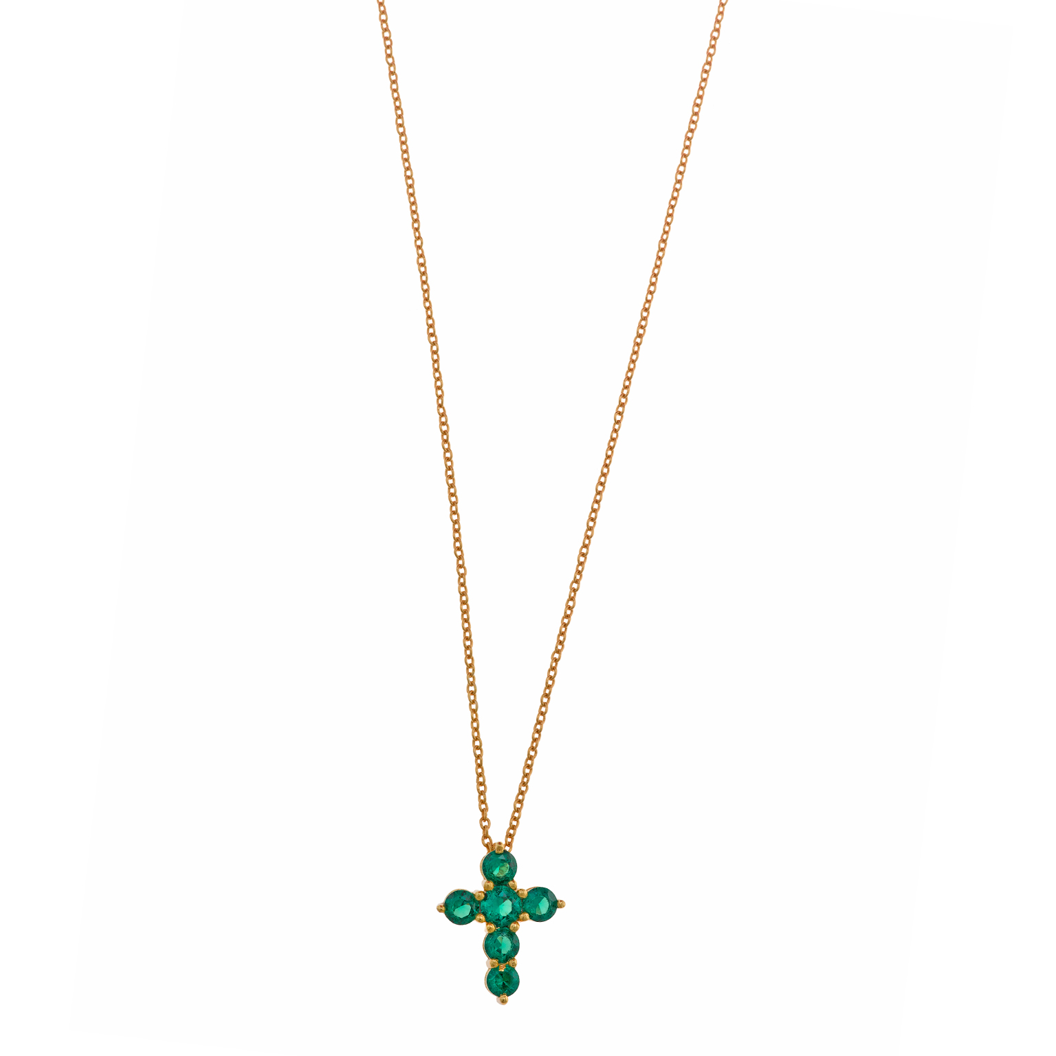 COLLAR SALVATORE 136C0347 CHAPADO DORADO CRUZ CIRCONITA VERDE