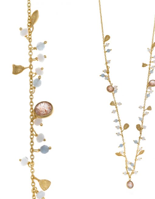 COLLAR SALVATORE 163C0119 CHAPA DODORADO CHATON CUARZO FRESA BOLITAS AGATA