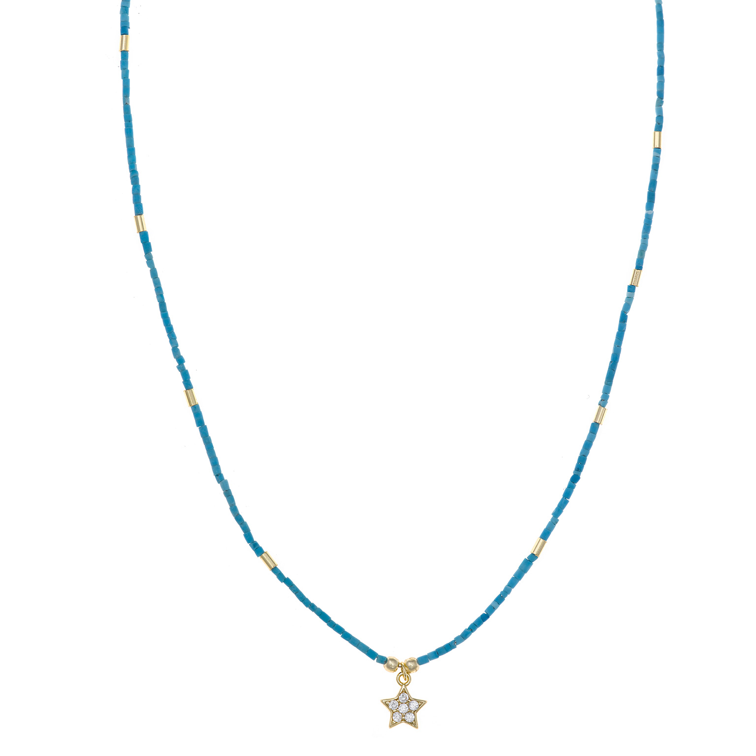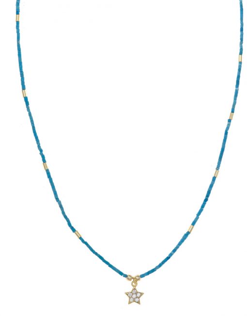 COLLAR SALVATORE 213C0089 PLATA CHAPADO DORADO TURQUESA ESTRELLA CIRCONITA BLANCA