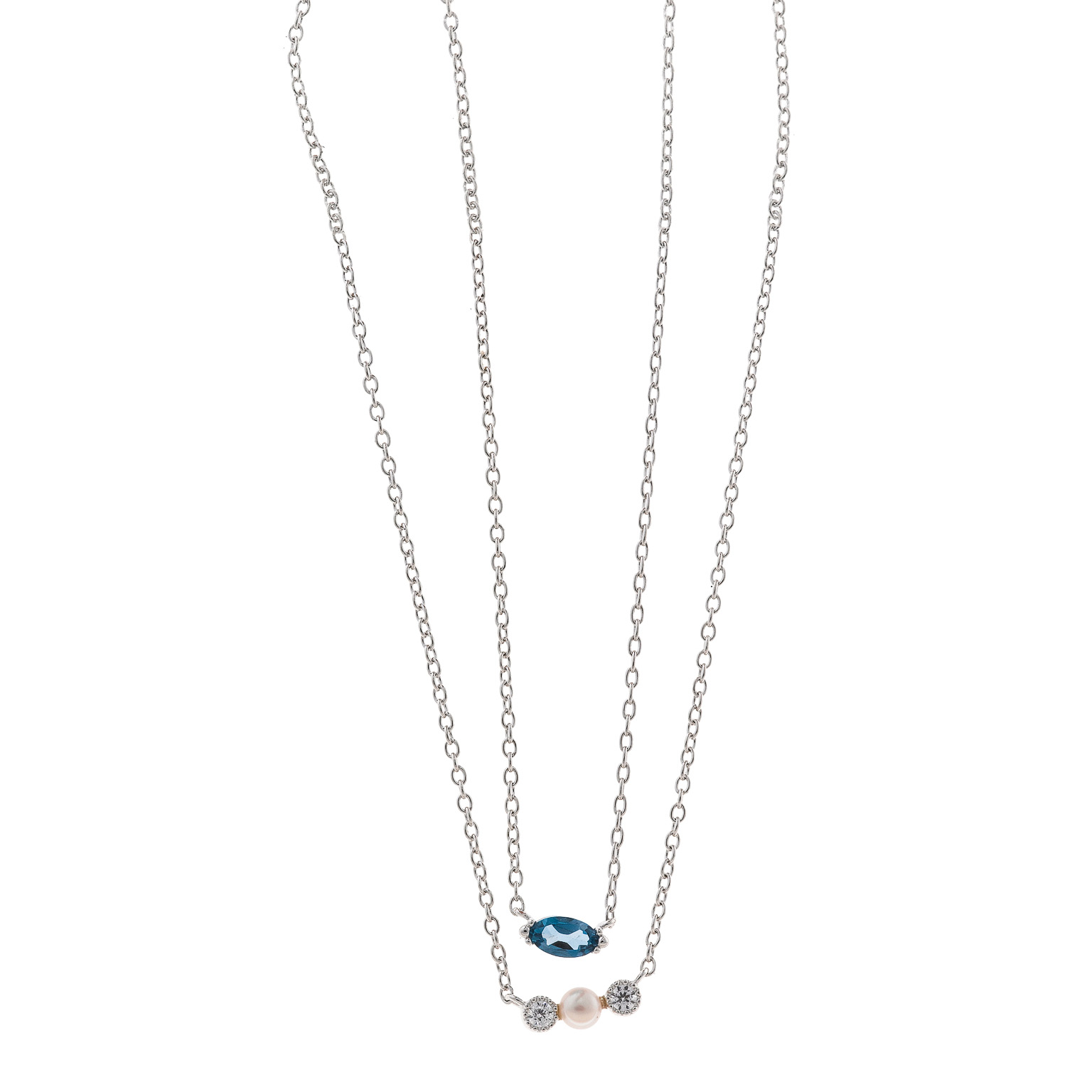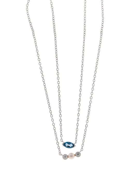 COLLAR SALVATORE 272C0050 PLATA RODIO DOBLE PERLA