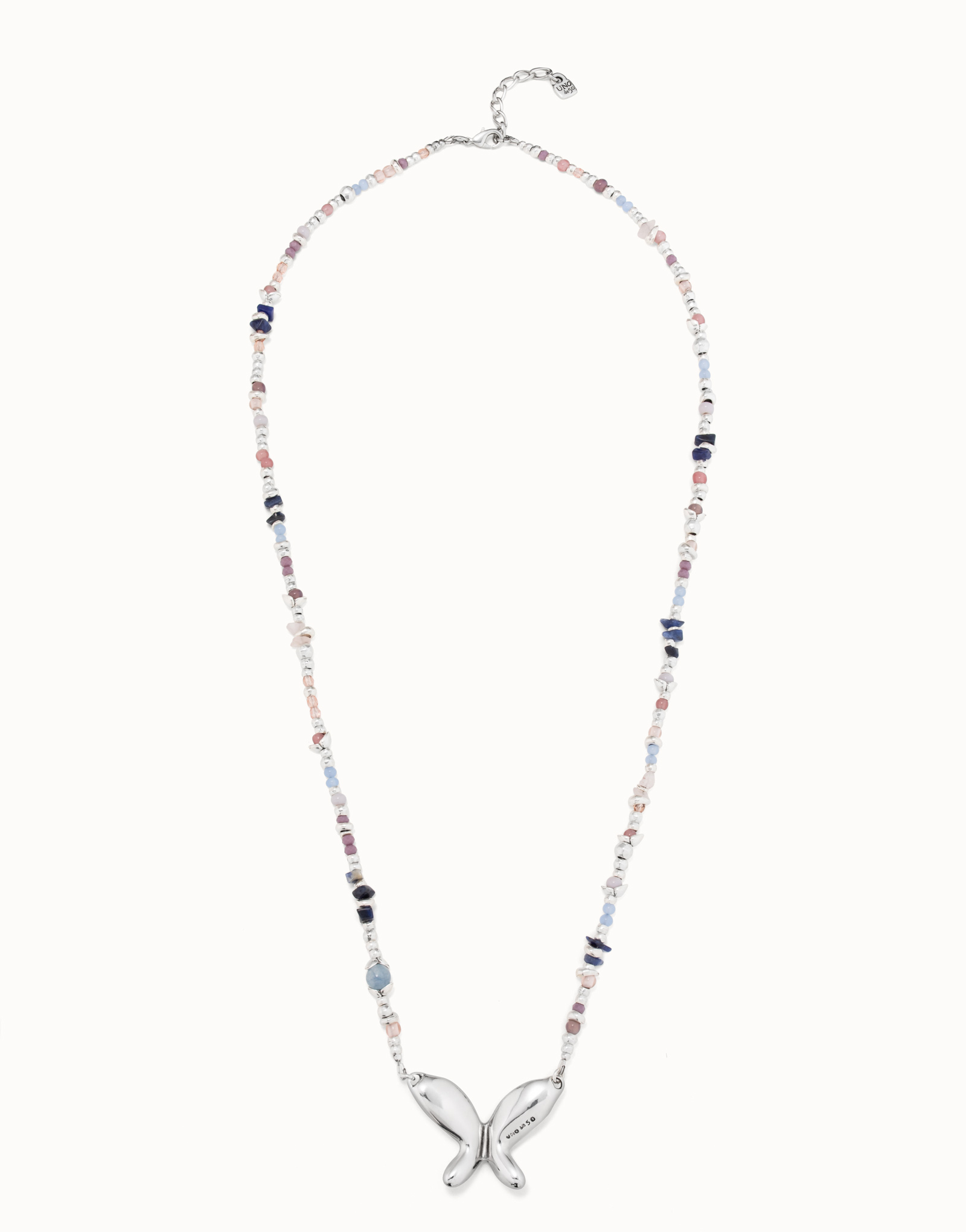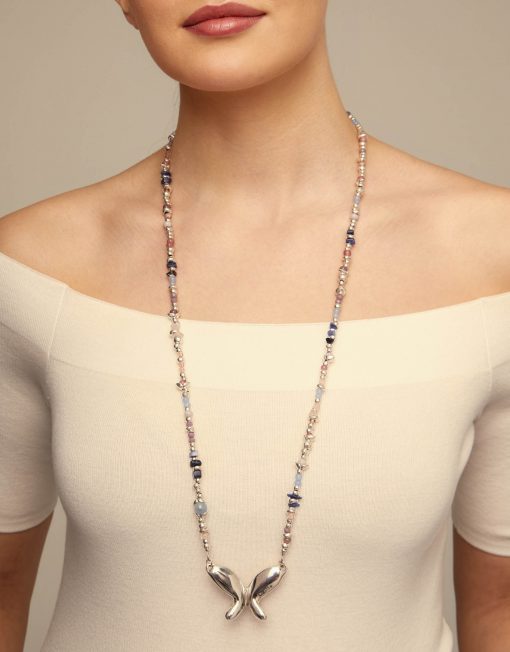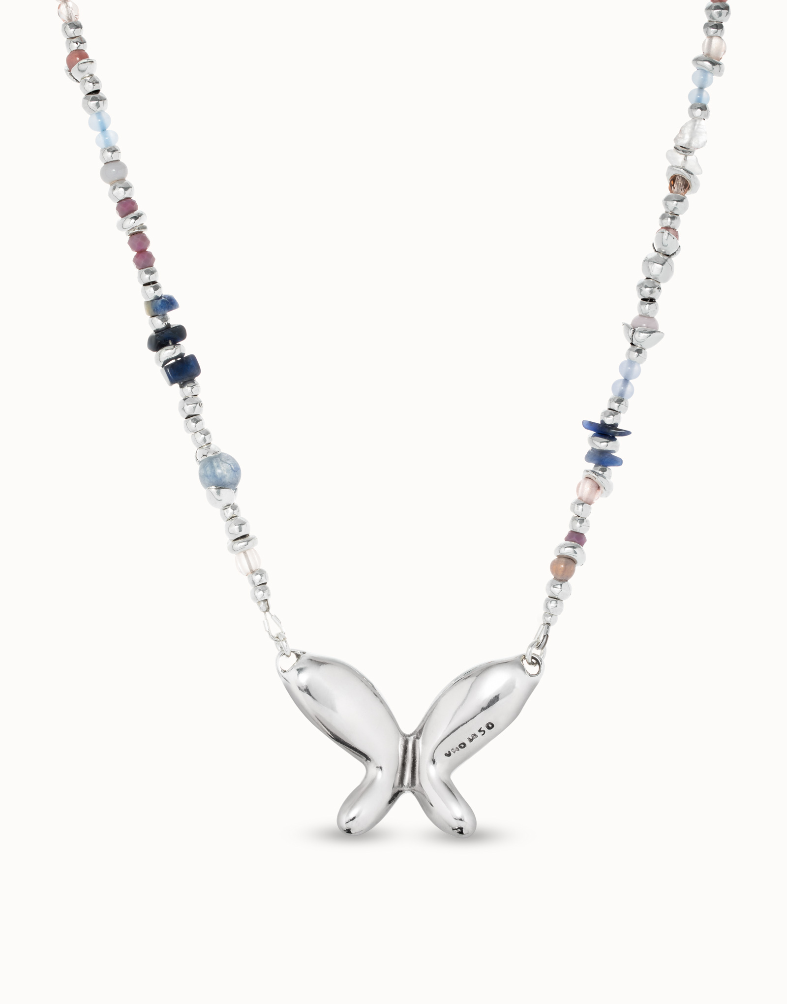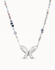 COLLAR DE PLATA DE BOLAS Y CRISTALES MULTICOLOR CON MARIPOSA CENTRAL FREE||Inspirada en elementos de la naturaleza siempre presentes en la historia de UNOde50, la colección Free incluye joyas como este collar largo que combina una fornitura de bolas plateadas con cristales artesanales multicolor y una mariposa central. Dispone de un cierre de mosquetón ajustable. ||Joya Made in Spain, elaborada 100% artesanalmente, consiguiendo así un acabado de diseño único.