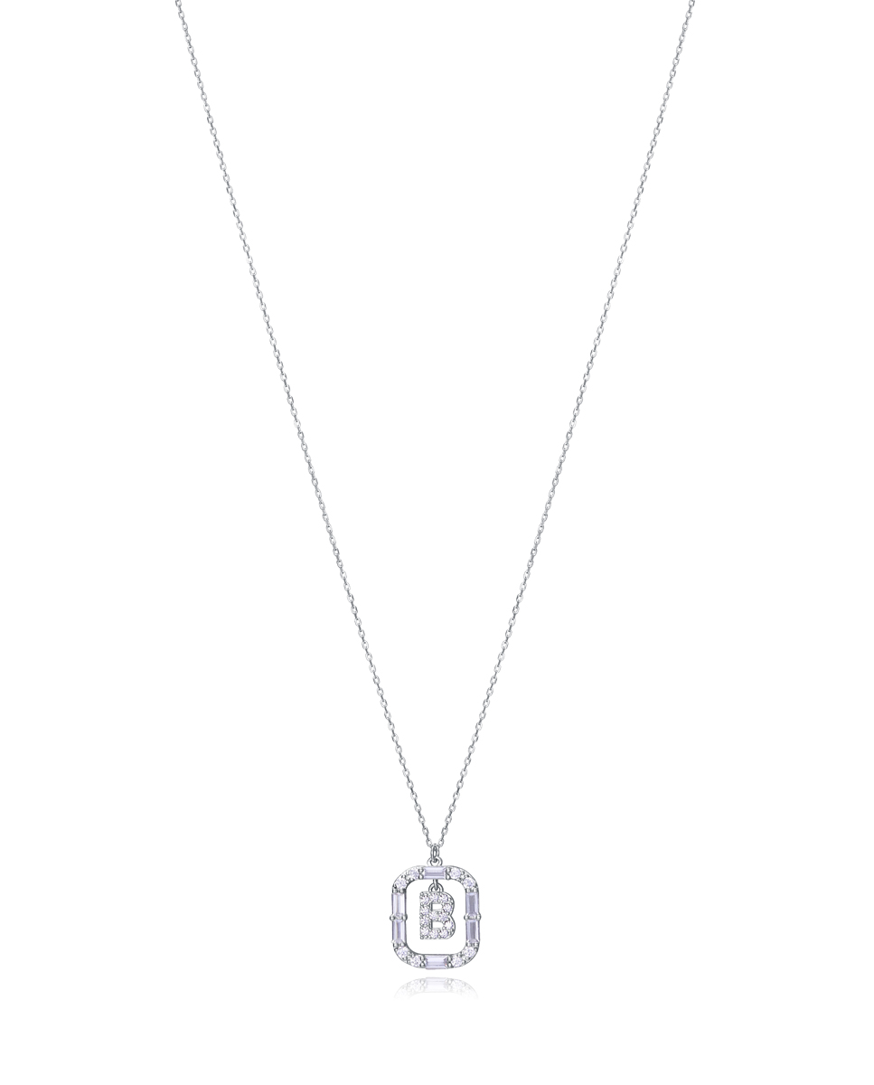 Collar con la letra B de plata y circonitas blancas de 42 cm de largo. Luce una joya personalizada y realizada con los mejores materiales, con extremo mimo y cuidado. Un colgante que te acompañe siempre, con el que llenar de buenos momentos la vida. Brilla como solo tú sabes. Longitud: 42 cm.