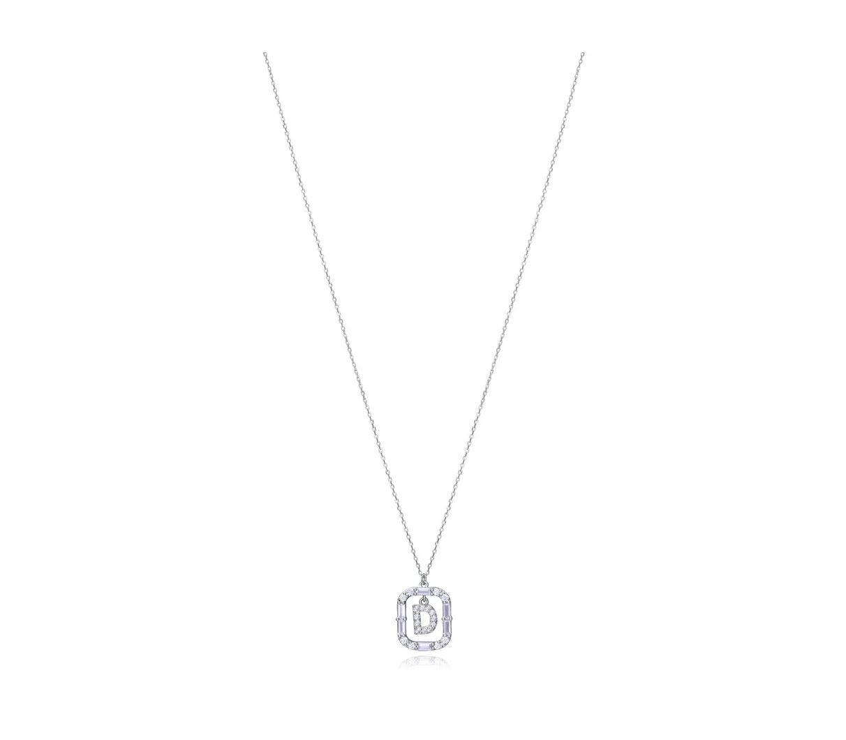 Collar con la letra D de plata y circonitas blancas de 42 cm de largo. Luce una joya personalizada y realizada con los mejores materiales, con extremo mimo y cuidado. Un colgante que te acompañe siempre, con el que llenar de buenos momentos la vida. Largo 42 cm
